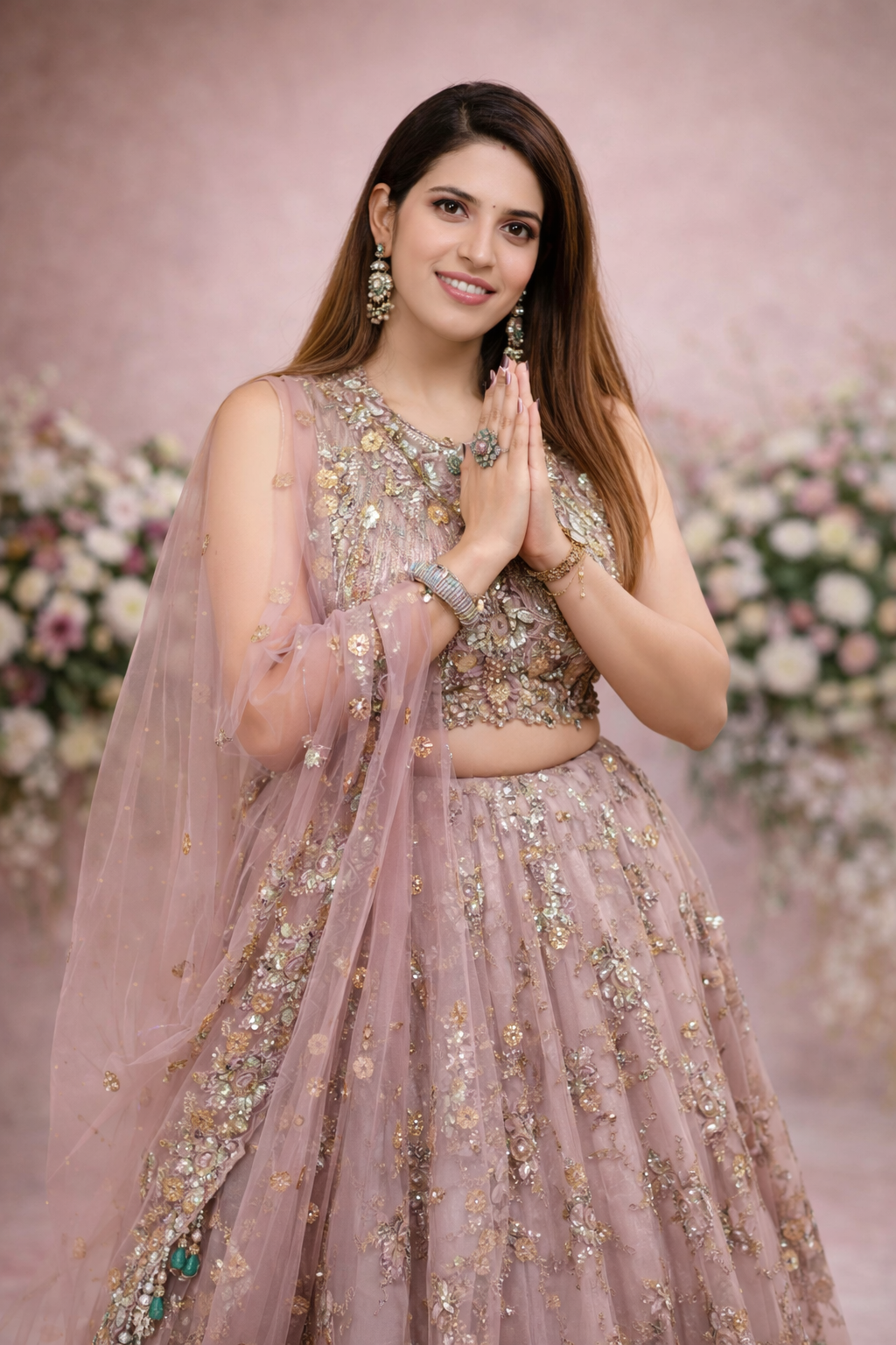 Perfect for weddings, festive occasions, and celebrations, this lehenga blends tradition with modern charm — giving you a radiant, feminine look that stands out effortlessly.